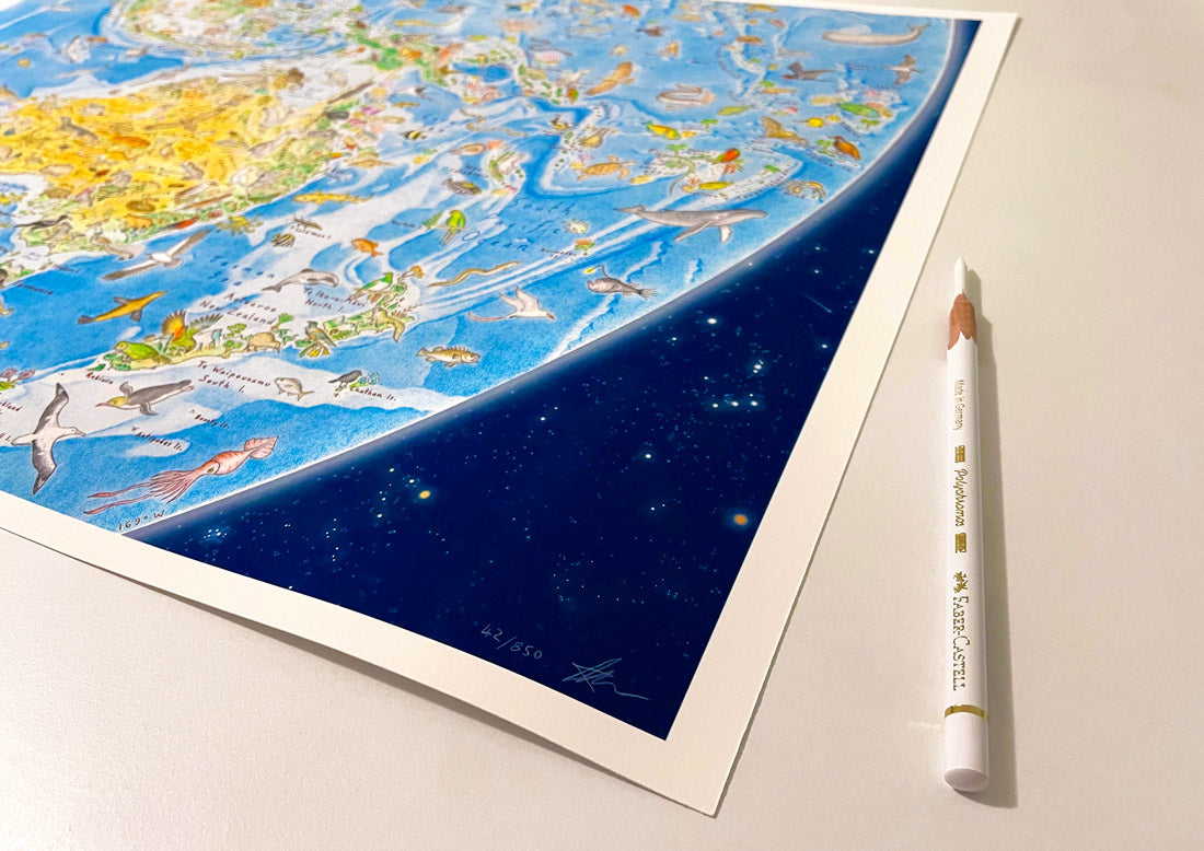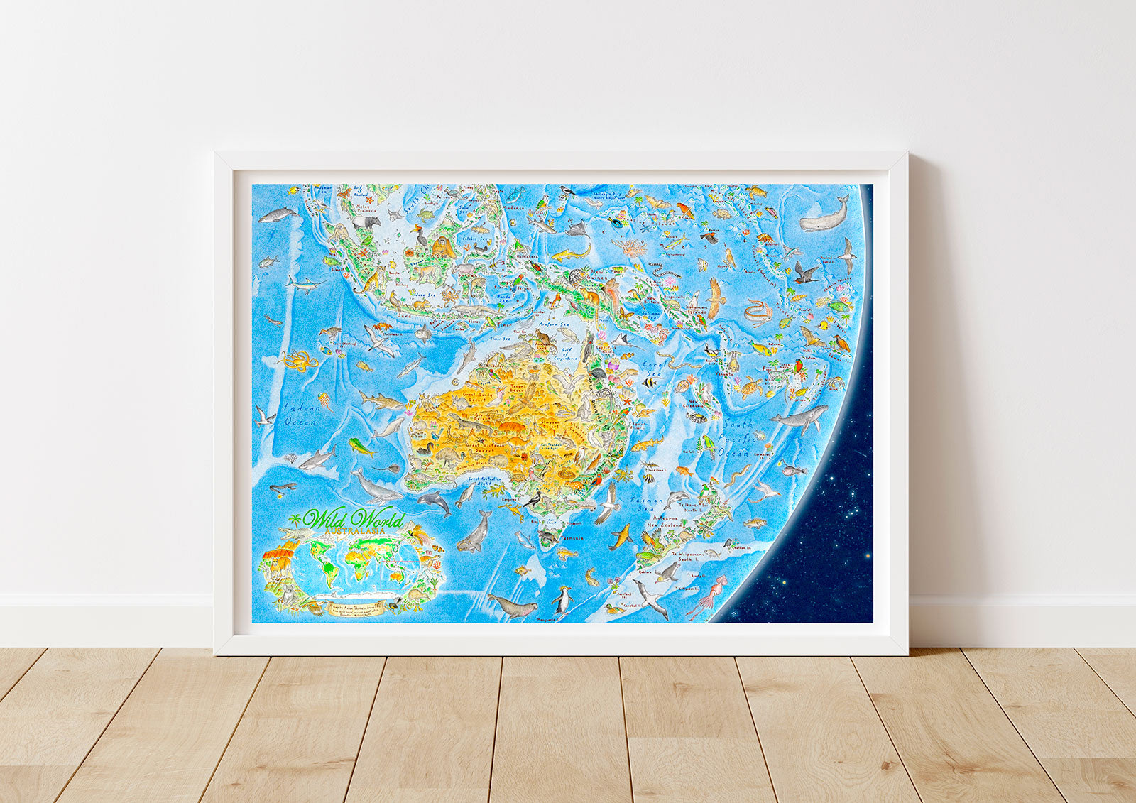 If you’re framing a map, we recommend considering perspex/acrylic instead of glass for the largest prints (e.g the Wild World limited editions). This is generally lighter, safer, and more suitable for oversized frames. A mat board is not essential – all prints include a generous white border for framing.